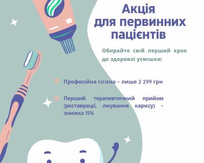 Ми цінуємо довіру кожного нового пацієнта і хочемо, щоб ваш перший візит був максимально комфортним. Саме тому підготували спеціальні пропозиції:
